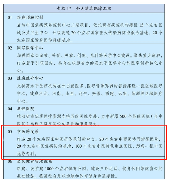 第十三篇第四十四章提出“全面推進(jìn)健康中國(guó)建設(shè)”,該章第四節(jié)指出,推動(dòng)中醫(yī)藥傳承創(chuàng)新: