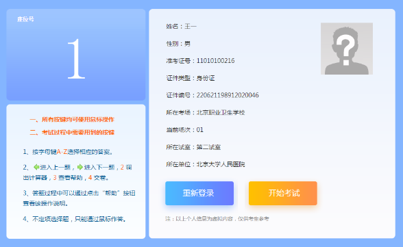 在界面上確認(rèn)核對自己的考試信息、了解操作說明