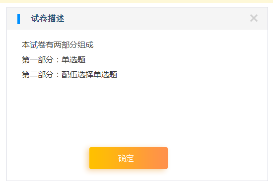 首先彈出的是“試卷描述”對話框,主要介紹本次考試的題型類型
