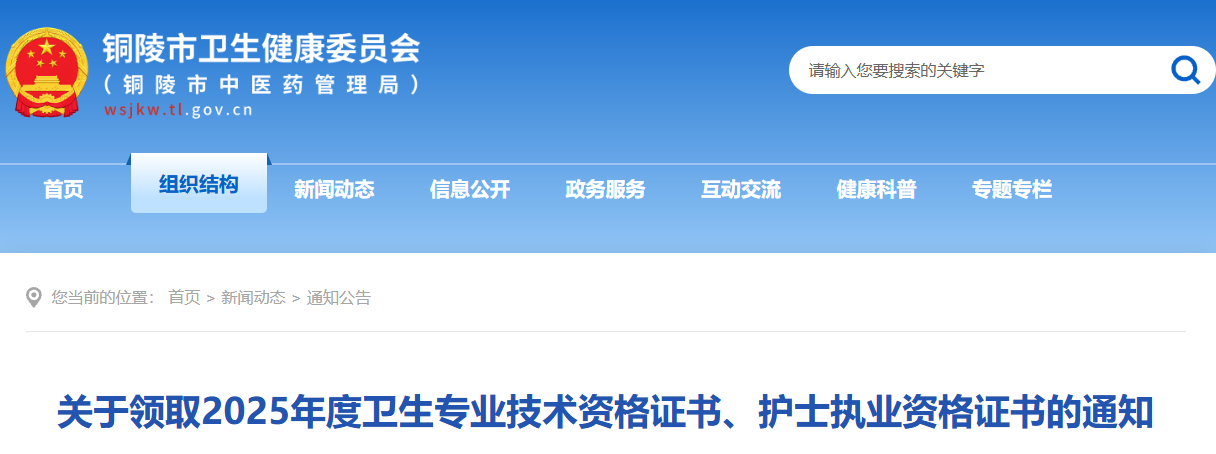 參加2025年衛(wèi)生專業(yè)技術(shù)資格考試和護士執(zhí)業(yè)資格考試且成績合格的銅陵市考點考生,即日起可領(lǐng)取資格證書,現(xiàn)就領(lǐng)取證書的具體事宜通知如下:
