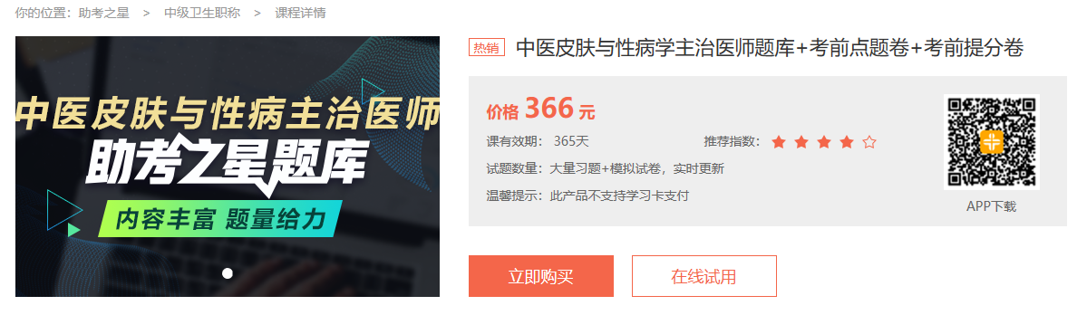 下載地址:中醫(yī)皮膚與性病主治醫(yī)師助考之星題庫下載入口>>