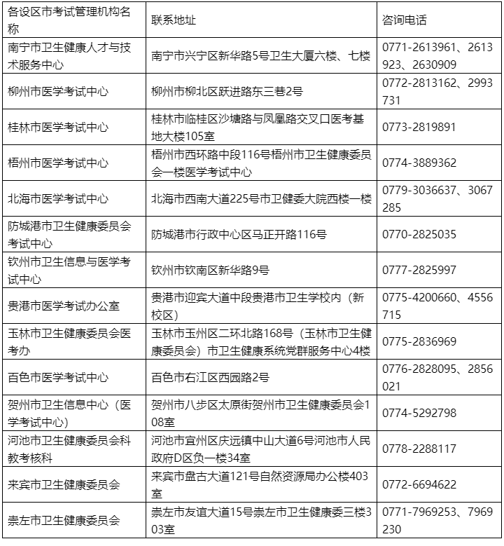 2.廣西考區(qū)各設(shè)區(qū)市考試管理機(jī)構(gòu)聯(lián)系地址及咨詢電話