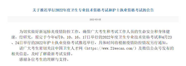 根據(jù)中國(guó)衛(wèi)生人才網(wǎng)3月25日發(fā)布的最新通知,原定于4月10日的2022年中醫(yī)全科主治醫(yī)師考試推遲舉行,具體考試時(shí)間待定。