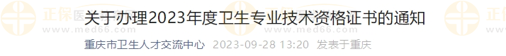 詳情重慶市關(guān)于辦理2023年中醫(yī)全科主治醫(yī)師證書的通知公布啦,醫(yī)學(xué)教育網(wǎng)整理具體內(nèi)容如下:
