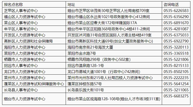 煙臺(tái)市各縣市區(qū)考試中心聯(lián)系電話及地址