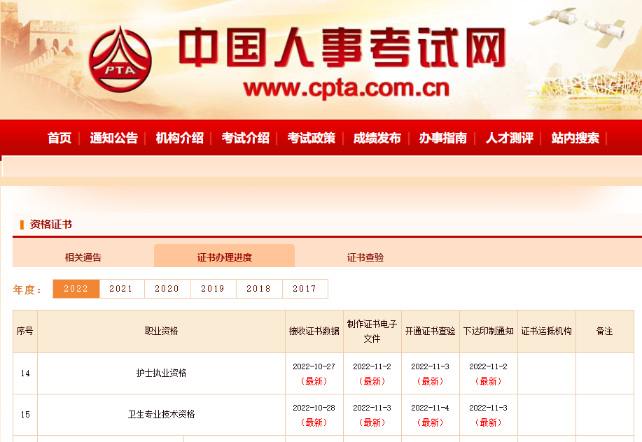 中國人事考試網更新了2022年衛(wèi)生資格考試證書辦理進度,2022年衛(wèi)生資格考試電子證書已經可以查驗下載了,同時紙質證書已于11月3日下達印制通知!