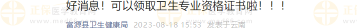 曲靖富源縣2023年衛(wèi)生專業(yè)資格證書領(lǐng)取通知公布啦!醫(yī)學(xué)教育網(wǎng)整理具體內(nèi)容如下: