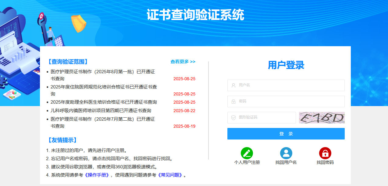 第三步:輸入”用戶名+密碼+圖形驗(yàn)證碼“,點(diǎn)擊”登錄“按鈕,即可自行查詢證書。