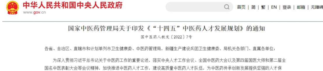 國家中醫(yī)藥管理局印發(fā)《“十四五”中醫(yī)藥人才發(fā)展規(guī)劃》通知