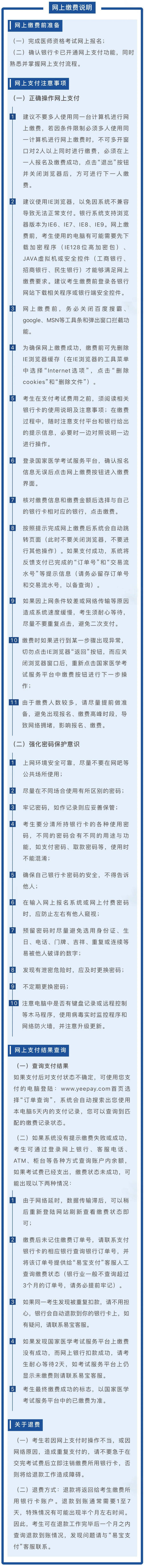 網(wǎng)上繳費(fèi)日期待定。請(qǐng)考生注意考區(qū)或考點(diǎn)的公告。