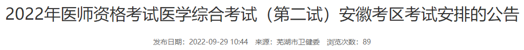2022年安徽省蕪湖市中醫(yī)執(zhí)業(yè)醫(yī)師資格考試綜合筆試(二試)報(bào)名/繳費(fèi)時(shí)間