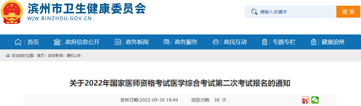 山東省濱州市2022年中醫(yī)執(zhí)業(yè)醫(yī)師資格考試醫(yī)學(xué)綜合考試第二次考試報(bào)名通知