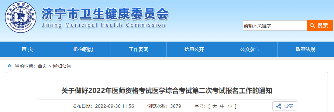 山東考區(qū)濟寧考點2022年中醫(yī)執(zhí)業(yè)醫(yī)師醫(yī)學(xué)綜合考試第二次考試報名通知