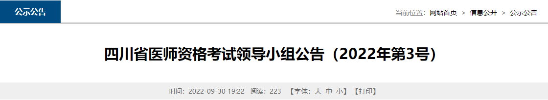 巴中市轉(zhuǎn)發(fā)四川省醫(yī)師資格考試領(lǐng)導(dǎo)小組公告(2022年第3號)-2022年醫(yī)師資格一年兩試考試報名通知