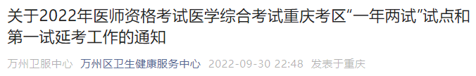重慶考區(qū)2022醫(yī)師資格考試綜合筆試“一年兩試”考試安排:
