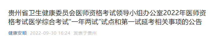 貴州省安順考點(diǎn)2022年中醫(yī)執(zhí)業(yè)醫(yī)學(xué)綜合考試“一年兩試”試點(diǎn)和第一試延考考試公告