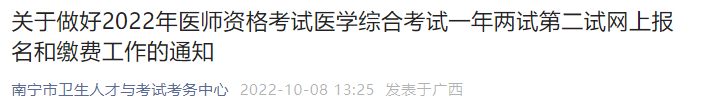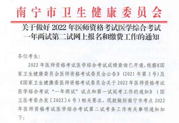 廣西南寧考點(diǎn)2022年中醫(yī)執(zhí)業(yè)醫(yī)師醫(yī)學(xué)綜合考試一年兩試第二試網(wǎng)上報(bào)名和繳費(fèi)工作通知