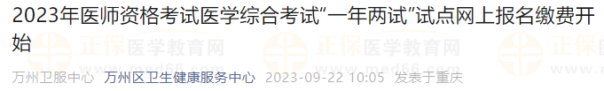 重慶市萬州區(qū)2023年中醫(yī)執(zhí)業(yè)醫(yī)師資格考試“一年兩試”試點網(wǎng)上報名繳費安排