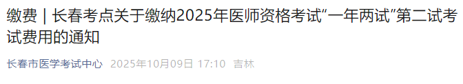 吉林長春2025年中醫(yī)執(zhí)業(yè)醫(yī)師二試繳費已開始,掃碼繳費!以下為吉林長春考點官方通知,請相關(guān)考生及時查看,按時完成繳費。