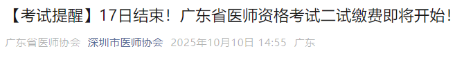 - · 注意!廣東深圳2025年中醫(yī)執(zhí)業(yè)醫(yī)師(二試)繳費(fèi)10月17日截止!