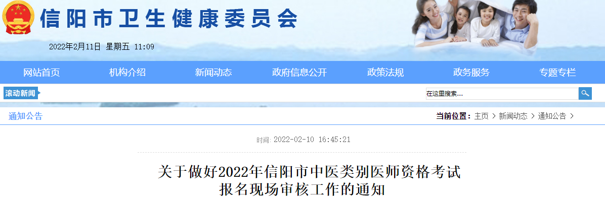 中醫(yī)補(bǔ)報!2022年信陽市中醫(yī)執(zhí)業(yè)醫(yī)師資格考試報名現(xiàn)場審核工作的通知