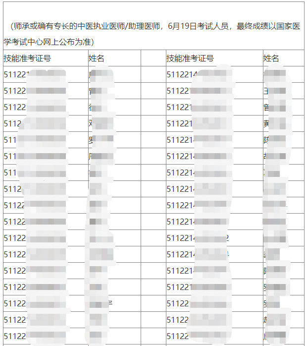 四川瀘州2021年師承確有專長(zhǎng)中醫(yī)執(zhí)業(yè)醫(yī)師實(shí)踐技能考試成績(jī)合格名單(6月19日)