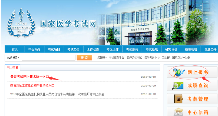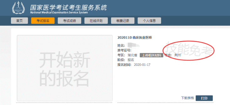 第三步:在考生個人報名界面中,點“考試報名”即可查看技能考試結(jié)果:“未通過”、“技能通過”、“技能免考”。