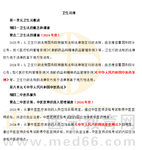 速看!2024年中醫(yī)執(zhí)業(yè)醫(yī)師醫(yī)學(xué)綜合考試《衛(wèi)生法規(guī)》教材變動(dòng)