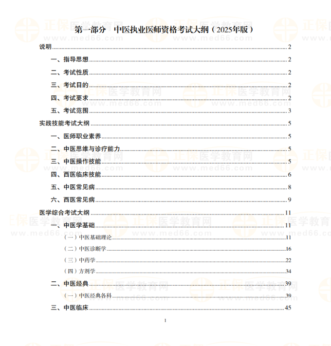 2025年新版中醫(yī)執(zhí)業(yè)醫(yī)師考試大綱