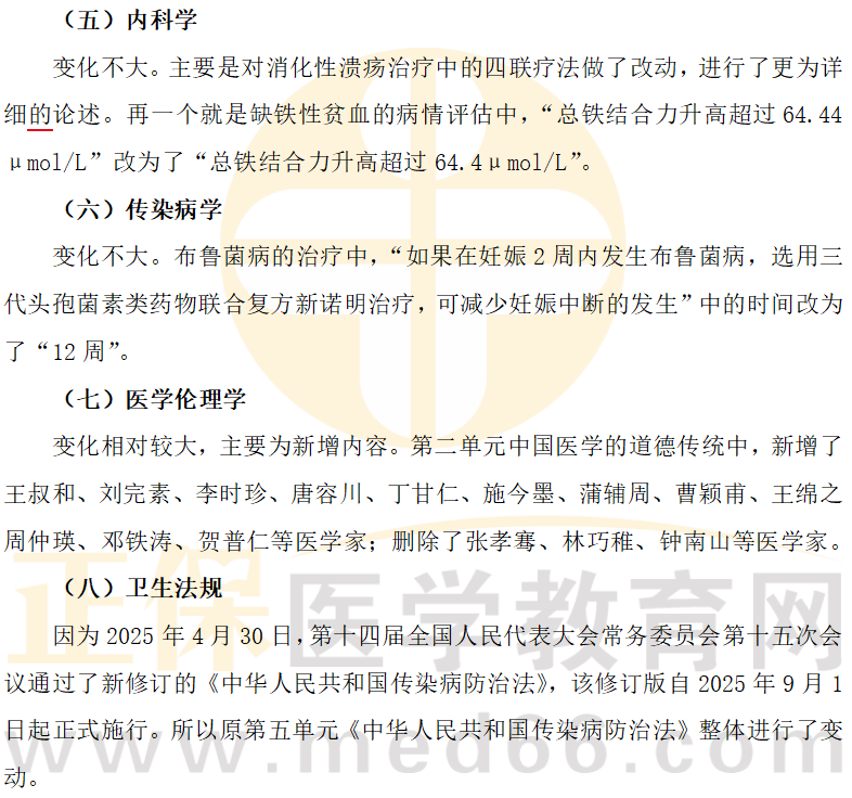 其余科目《中醫(yī)診斷學(xué)》《方劑學(xué)》《中醫(yī)經(jīng)典》《中醫(yī)外科學(xué)》《中醫(yī)婦科學(xué)》《中醫(yī)兒科學(xué)》《診斷學(xué)基礎(chǔ)》均無實(shí)質(zhì)性變動(dòng)。