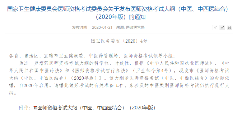 中醫(yī)執(zhí)業(yè)醫(yī)師考試大綱(2020版)