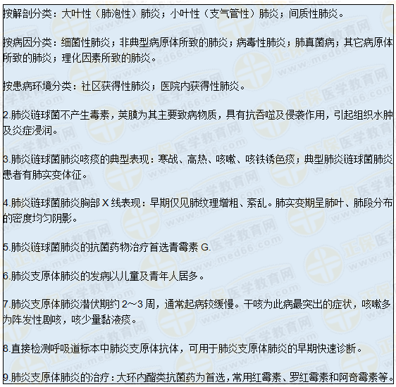 中醫(yī)執(zhí)業(yè)醫(yī)師內(nèi)科學(xué)考點速記—肺炎