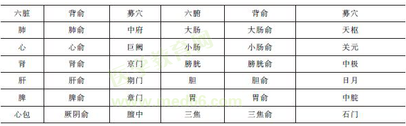背俞穴是臟腑之氣輸注于背腰部的腧穴。募穴是臟腑之氣結(jié)聚于胸腹部的腧穴。