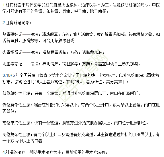 中醫(yī)執(zhí)業(yè)【中醫(yī)外科學(xué)】考點:肛癰、肛漏