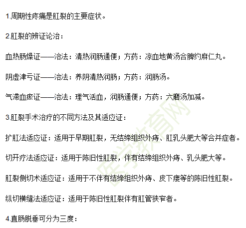 中醫(yī)執(zhí)業(yè)【中醫(yī)外科學】考點:肛裂|脫肛|鎖肛痔
