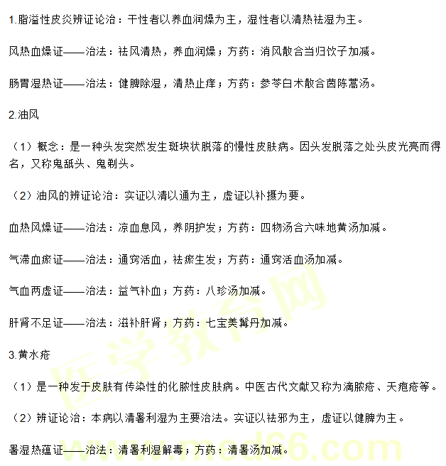 中醫(yī)執(zhí)業(yè)【中醫(yī)外科學(xué)】考點:脂溢性皮炎|油風|黃水瘡|白疕