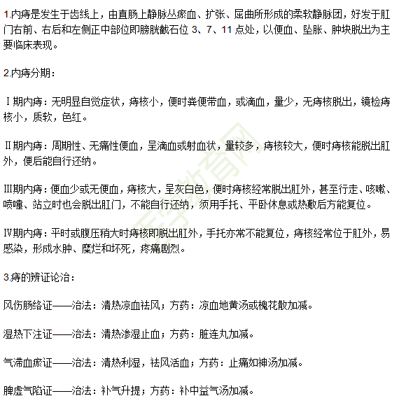 - · 中醫(yī)執(zhí)業(yè)醫(yī)師必背考點(diǎn):內(nèi)痔的病因病機(jī)、分期和辨證論治