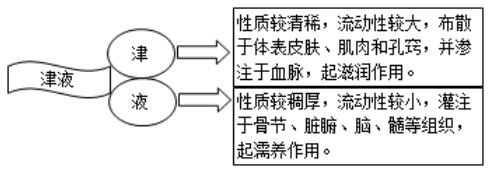 19.津液是機(jī)體一切正常水液的總稱,包括各臟腑組織器官的內(nèi)在體液及正常的分泌物。鑒別如下: