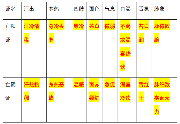 30.亡陽證與亡陰證的鑒別見下表