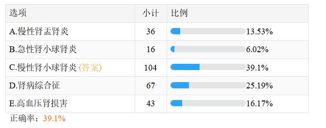 關(guān)于“2023年中醫(yī)執(zhí)業(yè)醫(yī)師摸底測試A3/A4型題:慢性腎小球腎炎”的相關(guān)內(nèi)容,相信很多正在備戰(zhàn)2023年中醫(yī)執(zhí)業(yè)醫(yī)師考試的考生十分關(guān)注,此題在摸底測試50題(點擊參加測試>>)中正確率僅為39.1%,建議大家及時復(fù)習(xí),牢固掌握相關(guān)知識點!