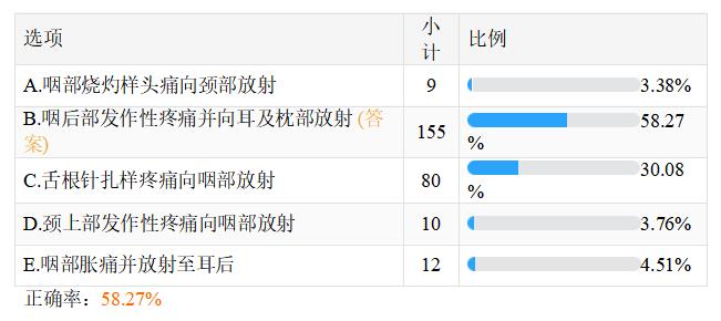 關(guān)于“中醫(yī)醫(yī)師練習(xí)題:舌咽神經(jīng)痛的特點(diǎn)是”的相關(guān)內(nèi)容,相信很多正在備戰(zhàn)2023年中醫(yī)執(zhí)業(yè)醫(yī)師考試的考生十分關(guān)注,此題在摸底測試50題(點(diǎn)擊參加測試>>)中正確率僅為58.27%,建議大家及時復(fù)習(xí),牢固掌握相關(guān)知識點(diǎn)!