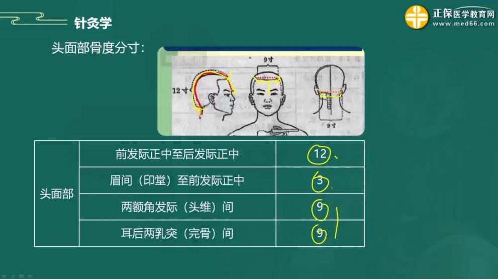 (3)兩額角發(fā)際(頭維)之間——9橫寸;