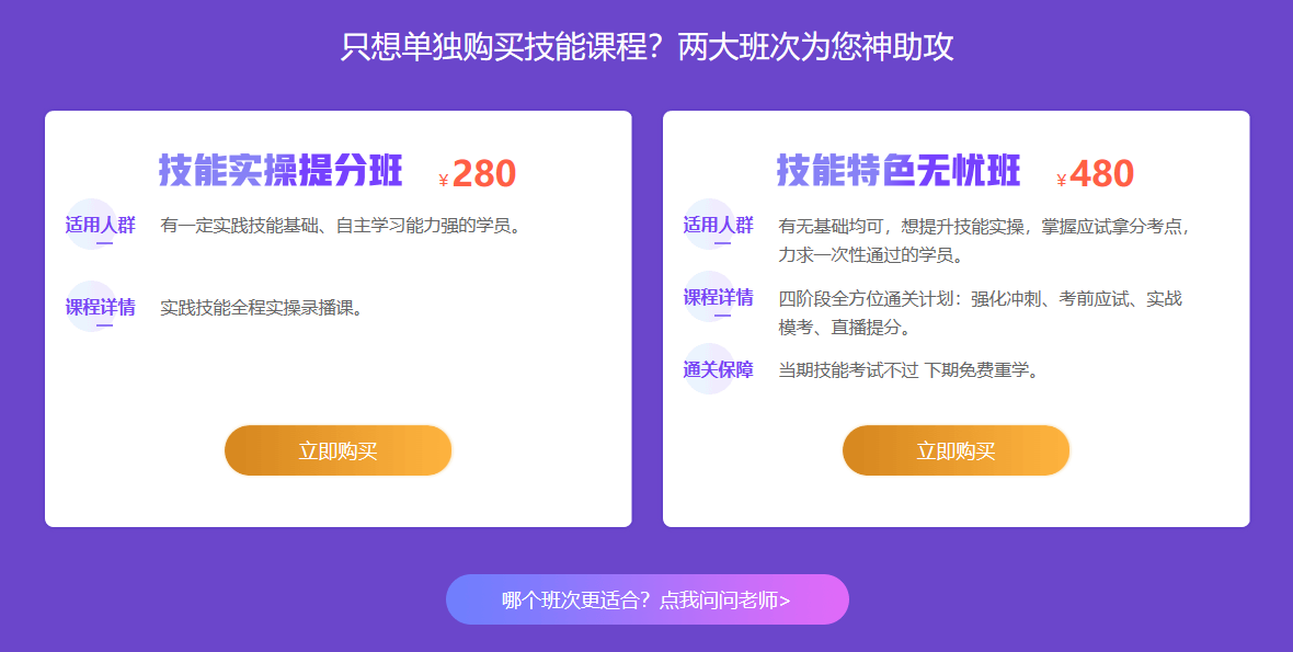 中醫(yī)執(zhí)業(yè)醫(yī)師技能特色無(wú)憂班(包含強(qiáng)化沖刺、實(shí)戰(zhàn)???、直播提高、應(yīng)試技巧四大小班次)學(xué)習(xí),價(jià)格低至480元,技能考試不過(guò),下期免費(fèi)重學(xué),班次詳情>>