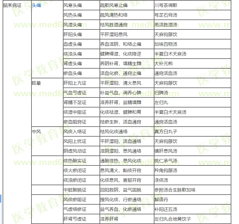 為幫助報考2020年中醫(yī)執(zhí)業(yè)醫(yī)師考試的考生學習,醫(yī)學教育網(wǎng)特整理了“中醫(yī)內科??疾“Y“腦系病證””,具體內容如下: