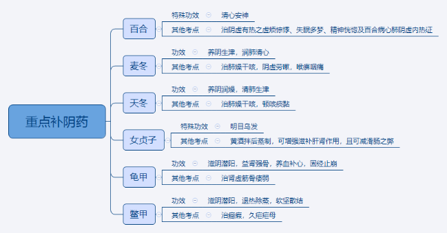 2024中醫(yī)執(zhí)業(yè)醫(yī)師考試重點知識點思維導(dǎo)圖:重點補陰藥