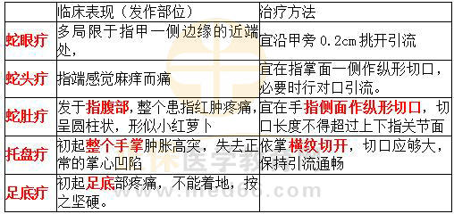 手足部疔瘡的臨床表現(xiàn)及治療(重點(diǎn))-中醫(yī)執(zhí)業(yè)醫(yī)師沖刺必背