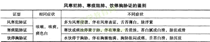 風(fēng)寒犯肺證、寒痰阻肺證、飲停胸脅證的鑒別要點