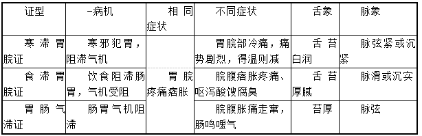 寒滯胃脘、食滯胃脘、胃腸氣滯證有哪些共同癥狀
