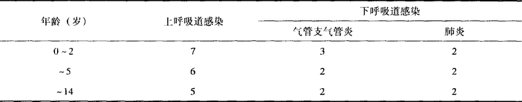 2.按半年內(nèi)呼吸道感染的次數(shù)診斷 半年內(nèi)呼吸道感染≥6次,其中下呼吸道感染≥3次(其中肺炎≥1次)。