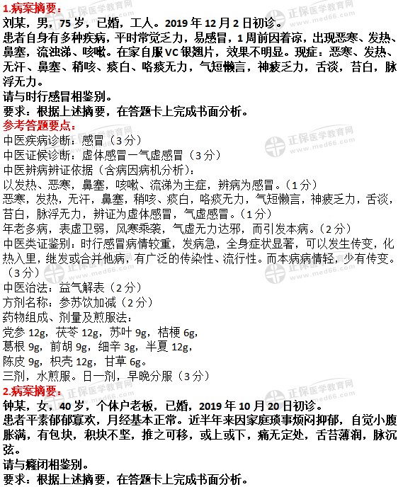 2020年中醫(yī)執(zhí)業(yè)醫(yī)師病案分析例題/答案解析/分值占比